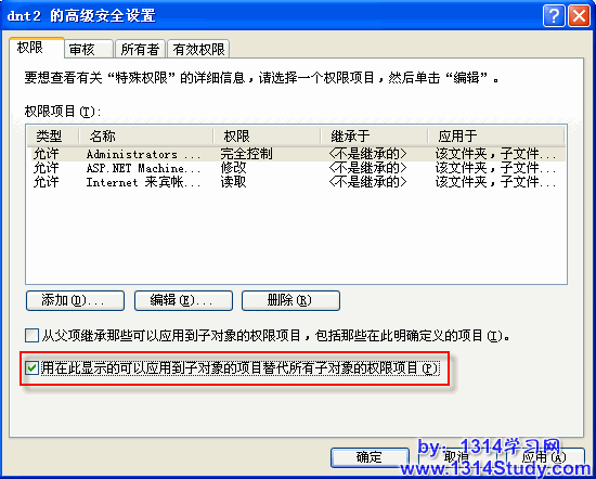 点击[高级]按钮,将权限应用到子目录及所有文件。