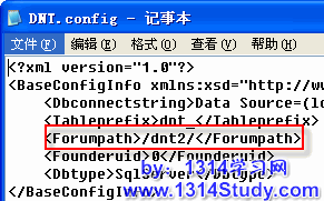DNT.config文件必须放到网站根目录下,而不是论坛根目录下(在我这里,默认网站根目录为 C:\inetpub\wwwroot\ )。其权限设置也是给 IIS 来宾帐号 "读"权限,给 ASPNET 帐号 “读”“写”“修改” 权限。如果是 .NET Framework 1.1 版本的情况,请修改 DNT.config 中的 Forumpath 节点为 /目录名/。(推荐使用记事本,避免保存的时候修改了文件编码)如下图。
