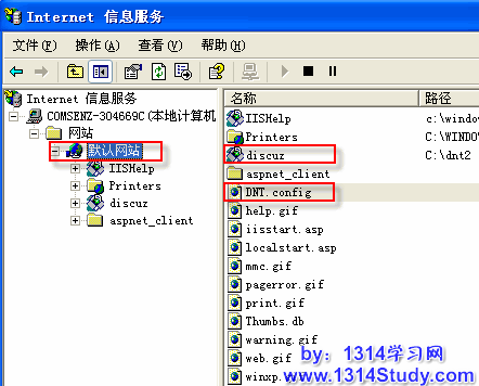 备注:本文讲述了 Windows XP 虚拟目录下建立站点,如果不使用虚拟目录而是直接建立二级文件夹,也就是说 C:\inetpub\wwwroot\dnt2 只是一个普通文件夹,而不是虚拟目录。那么需要把 dnt2 目录下的 bin 目录、 config 目录、 web.config 文件一同放到网站的根目录下,也就是 C:\inetpub\wwwroot\ 下面,并给予它们相应的权限。