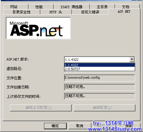 如果您同时安装了 .NET Framework 1.1 和 .NET Framework 2.0 可以在IIS的站点中的ASP.NET选项内选择和 Discuz!NT 程序相应的 asp.net 版本。