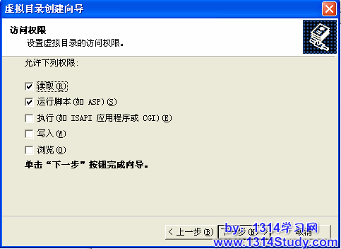 访问权限保持默认,更详细的权限在完成虚拟目录建立后再设置。然后下一步完成。