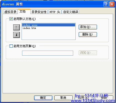 最后在文档选项中添加 index.aspx 类型的默认页。