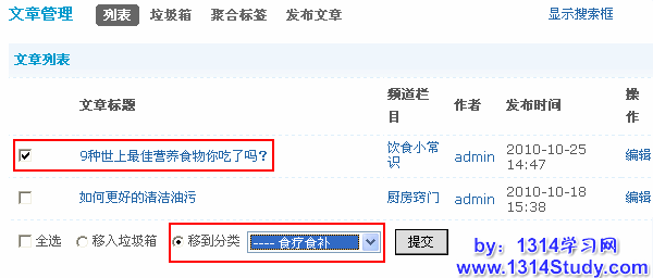 移到分类:可以把某篇文章的分类移动到另一个分类下,如下图所示: