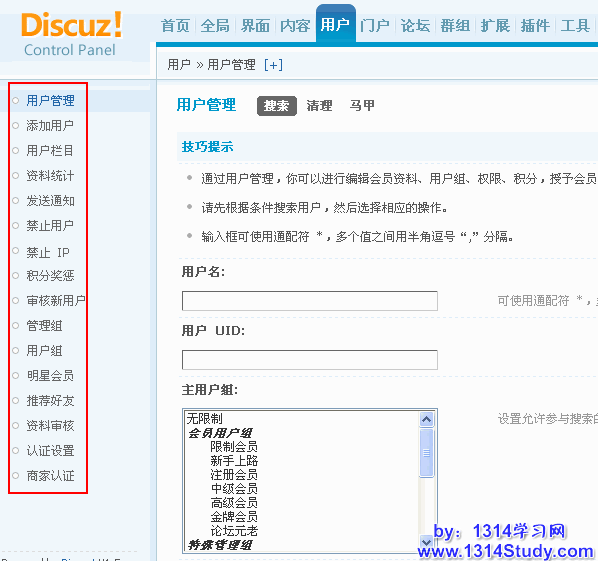 社区的管理后台是社区管理的核心组成部分,直接影响到站长的操作时间、管理效率等。Discuz! X 1.5作为一款跨界融合的产品,集多种社区应用于一体,后台管理功能在1.0的版本上进行了一系列优化,采用了树形导航栏和横排导航栏共同布局的人性化设计,方便站长操作。