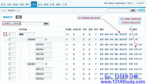 一个门户网站,每天肩负很多信息的更新,这就需要网站工作人员的分工与配合。Discuz! X 1.5 在后台门户栏目下新增了用户发布、管理文章的权限管理,将站长的工作任务分派到各个频道编辑的身上。