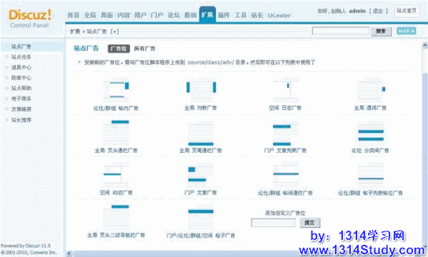 盈利是网站生存的基础和最终目标,也是站长最关心的问题之一。站长使用Discuz! X 1.5后台的“扩展”功能,通过轻松点击,即可满足网站商务拓展的需求。