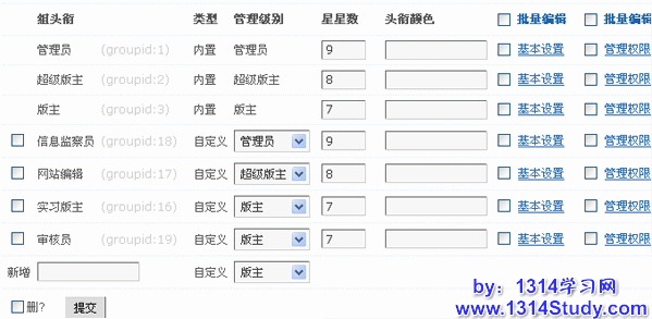 默认的管理级别有管理员、超级版主和版主。提交即可添加成功,然后设置相应的管理权限即可。