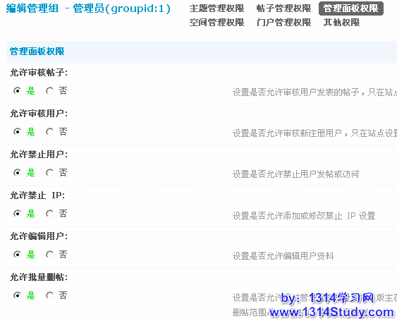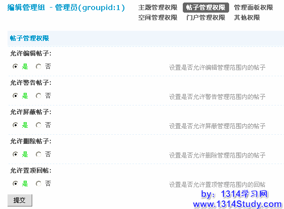 1)允许编辑帖子:设置是否允许编辑管理范围内的帖子。