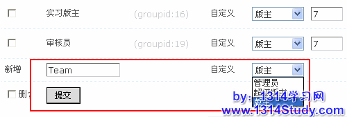 勾选自定义管理组前面的复选框,点击“提交”即可删除该管理组。