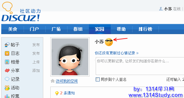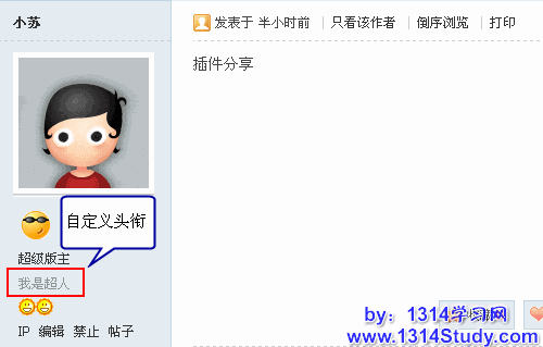16)允许自定义头衔:设置是否允许用户设置自己的头衔名字并在帖子页面中显示。选择“是”用户在【个人资料】=>【广场信息】中设置自己的头衔后效果如下: