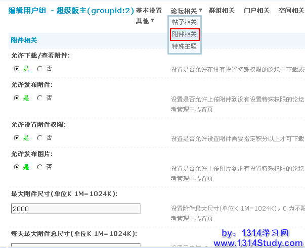 3)允许设置附件权限:设置是否允许设置附件需要指定积分以上才可下载。