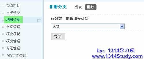 当对某一系统相册分类进行删除时,可以选择将此分类下的相册移动到其他相册分类中。如果该分类下存在子分类,还需要处理子分类,可以选择把子分类直接删除或是移动到上一级分类。