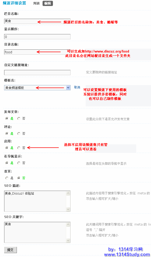 栏目名称:填写频道栏目的名称,如美食、婚嫁、亲子等。