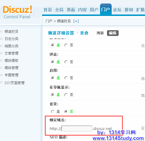 说明:如果站点的频道开启了二级域名,这里可以设置频道的二级域名。
