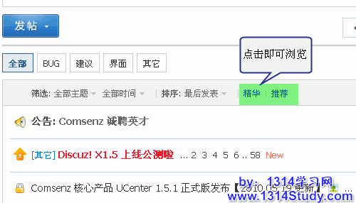 在版块列表中新加入了精华帖和推荐帖的快捷浏览。
