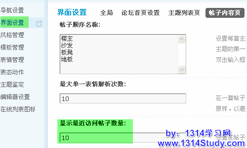 操作路径:【后台】=>【界面】=>【界面设置】=>【帖子内容页】=>【显示最近访问帖子数量】