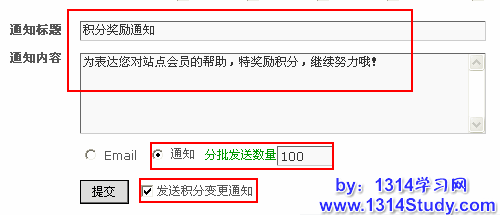 勾选“发送积分变更通知”,如图: