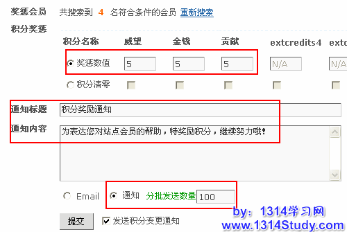 如果奖惩的用户较多,可设置“分批发送数量”默认为100。
