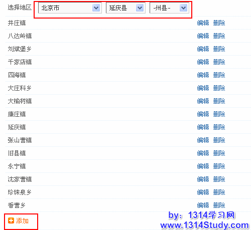 如果要在某一城市下面添加地区,可以选择好这个省份,然后在下面添加。