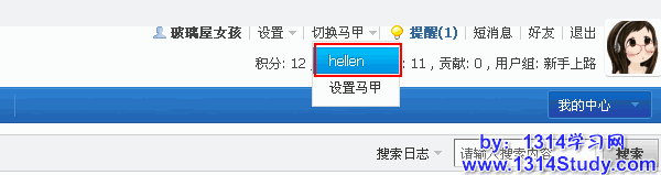 4、点击马甲账户名即可完成切换,这里备注一下,考虑到安全因素,Discuz! 的马甲切换不会产生自动双向切换,因此第一次切换时会提示“设置***为本账号的马甲的”,选择该项按照提示完成操作,即可在日后的管理中完成马甲账户的任意切换。