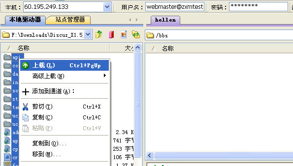 二、解压并上传 Discuz! X1.5 程序到服务器且修改相应目录权限