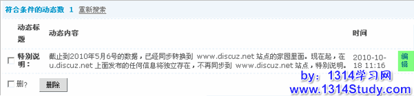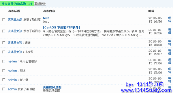 通过动态管理功能,站长可以方便的搜索和管理到站点动态,并且可以发表全局动态。
