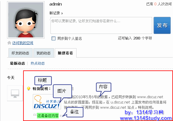 是在站内任何一个成员的好友动态里面都会出现的动态,每个成员都能第一时间看到。站长可以灵活使用全局动态来发布一些公开的信息。 如公告类的说明。