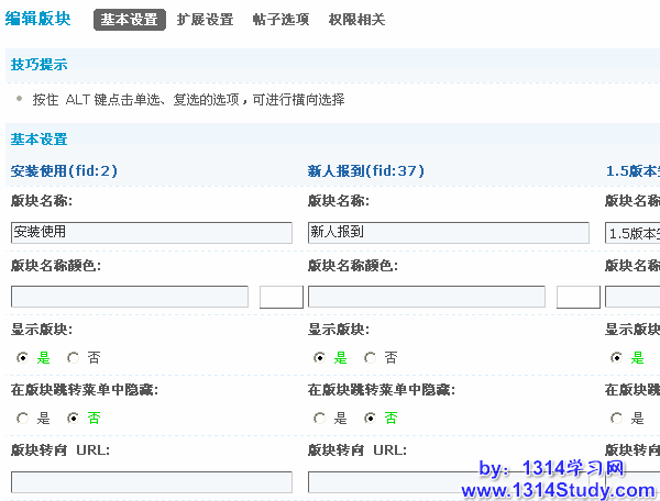 从这里,就可以方便的批量设置多个版块的设置了。
