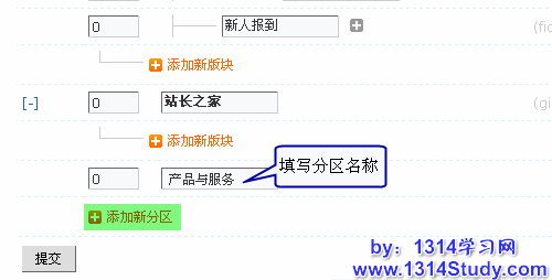 点击“添加新分区”然后填写分区名称,点击“提交”即可完成添加。