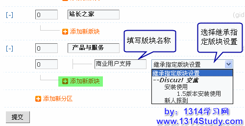 填写新版块的名称,然后选择继承指定的版块设置,不选择为不继承。