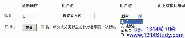 填写要添加为版主的会员名,并设置用户组;