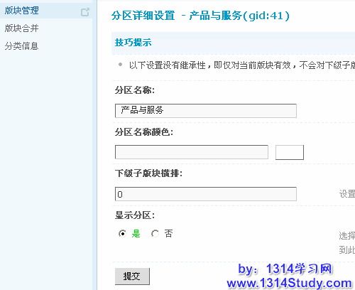 注意:如果分区下有版块或者子版块,必须先删除版块和下级子版块然后才可以删除分区。