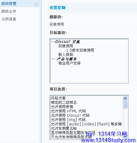 源版块:指将该版块的某些设置复制到目标版块。
