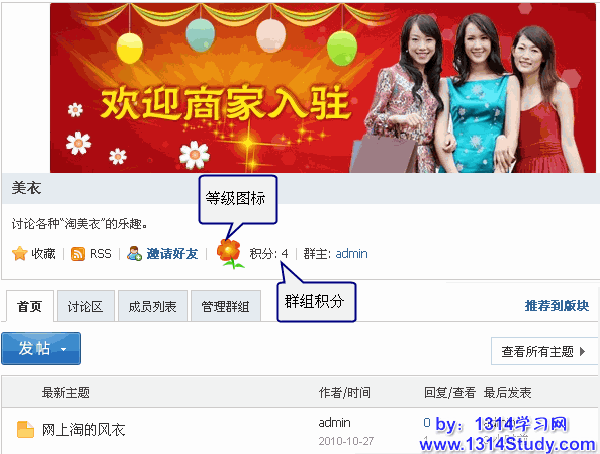 通过群组等级功能可以设置群组的不同等级,如同论坛中的用户组,不同的等级设置不同的权限,等级越高权限越大,这样可以让会员更积极的参与到群组升级中去。