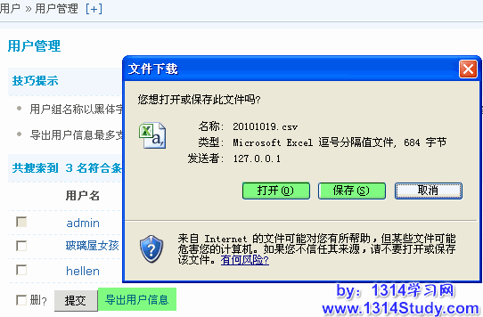 2、导出用户信息;