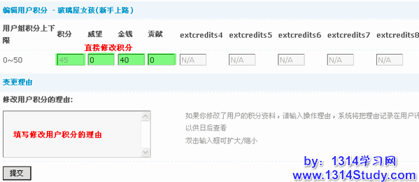 这里可以直接修改用户的积分数,点击“提交”即可生效。