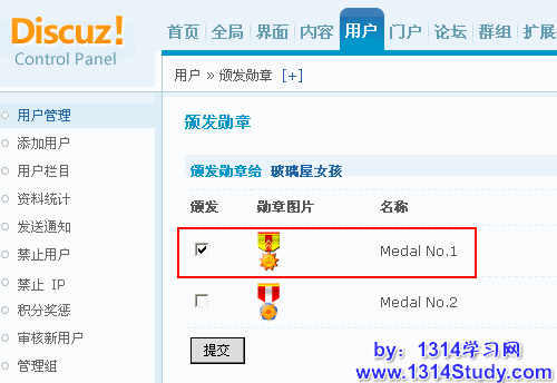 勾选想要颁发给该用户的勋章,然后点击“提交”即可。