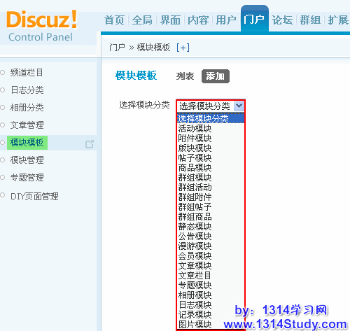 操作路径:【后台】=>【门户】=>【模块模板】