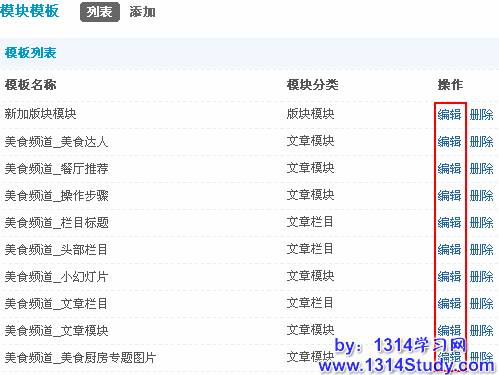 点击要删除的模块模板后面对应的删除链接,即可删除此模块模板,如下图所示: