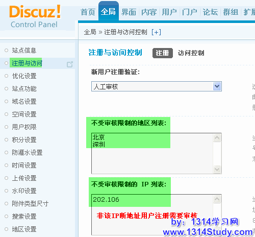 方案一:非本地IP地址用户注册需要审核(Discuz!X1.5新增方案)
