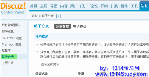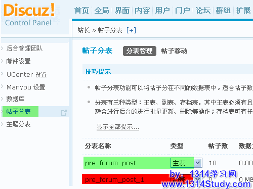 操作路径:【后台】=>【站长】=>【帖子分表】