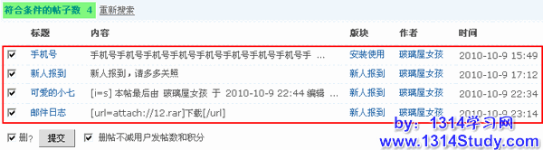 6、发帖IP:按照发帖者的IP地址进行搜索,可使用通配符'*'对某网段进行筛选,慎用!