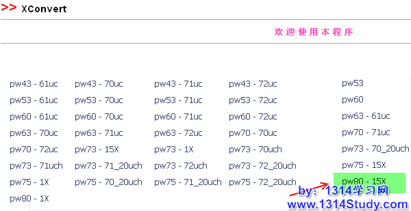 3、在上图中点击“pw80 - 15X”后,如下列图所示:上部分是转换说明,下部分是转换配置信息。