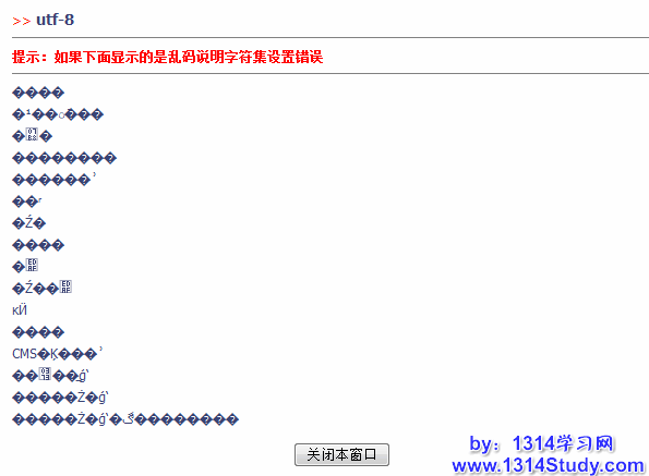 选择数据库字符集为 utf8 ,点击“检查此设置”,效果如下图 ,显然这个显示是乱码。