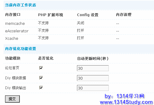 从 Discuz! X 开始,系统提供的内置的内存优化方式。目前支持的内存优化接口有 Memcache, eAccelerator, Xcache 三种,优化系统将会依据当前服务器环境依次选用接口。