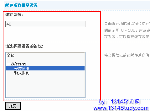该功能可以批量设置各个版块的帖子缓存系数,在开启了帖子缓存之后请指定这个值。