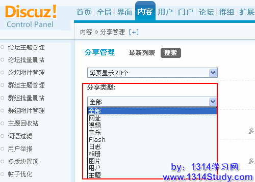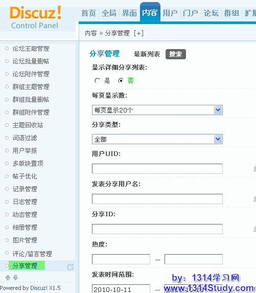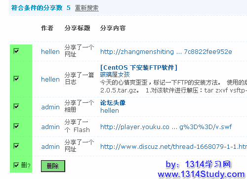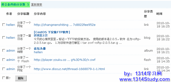 通过分享管理功能,站长可以方便的搜索和管理到分享内容。