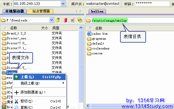 首先,上传该套表情图片到论坛根目录的 static/image/smiley/ 下,如下图所示: