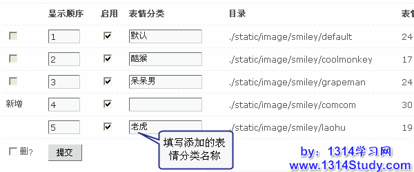 为您刚才上传的表情设置表情分类名,然后点击“提交”。然后点击“更新”并启用。