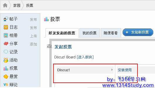 选择一个空间投票帖默认发表到哪个版块,如果不选择默认发表的版块,发表空间投票帖时将提示选择的版块,如下图所示: